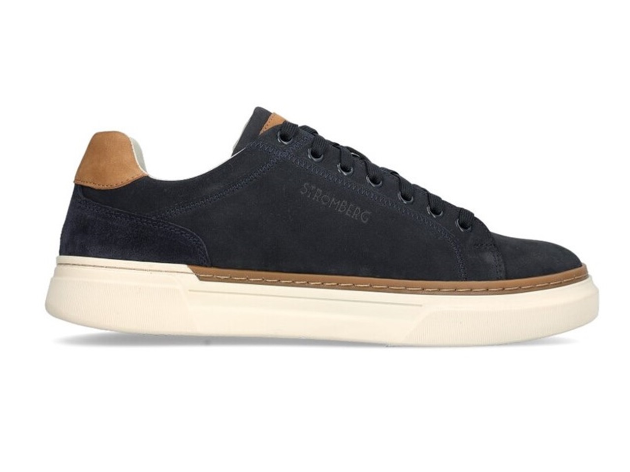 Verratti från Glenn Strömberg Collection är en stilren och bekväm sneaker tillverkad i mjukt marinblå nubuckläder, med eleganta blå detaljer. Skorna är utrustade med robusta metallöljetter och slitstarka nylonsnören, vilket garanterar en säker och hållbar passform. Den mjukt polstrade tungan ger extra komfort, medan den uttagbara innersulan erbjuder flexibilitet och möjlighet till anpassning.